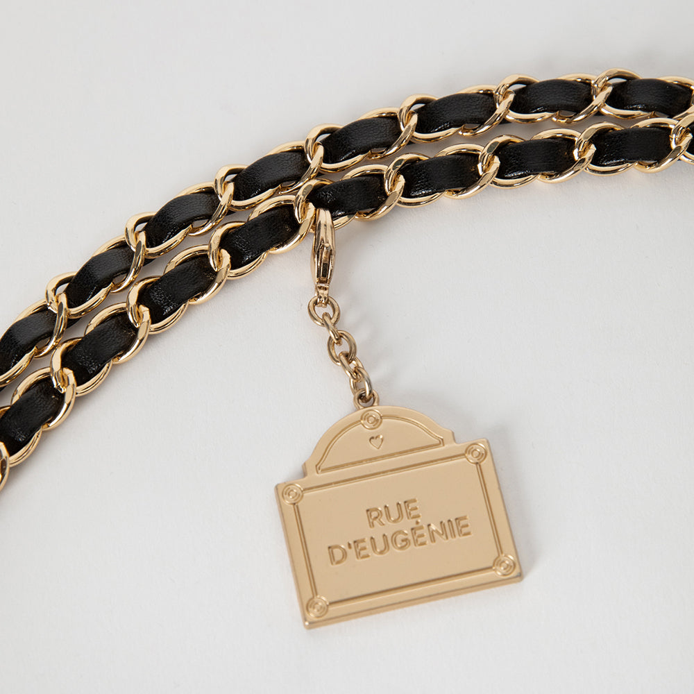 The gold chain is plated with 20K gold, featuring a dual-point synthetic leather strap.